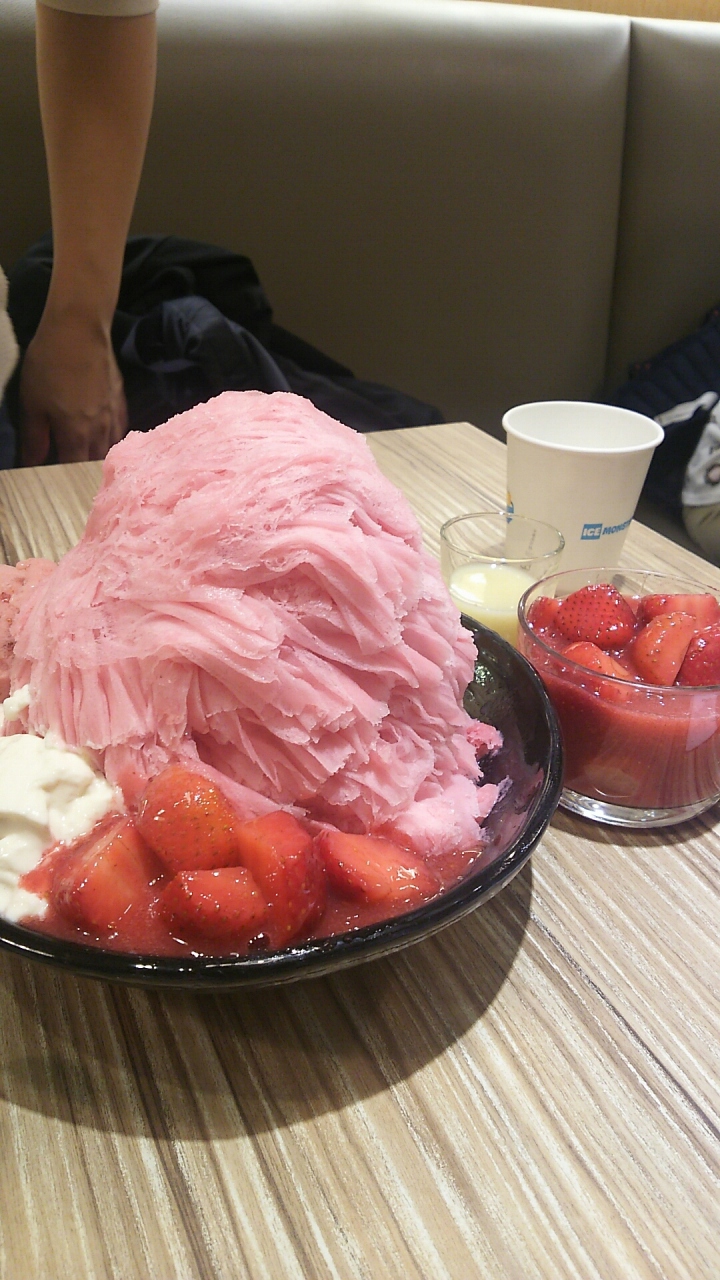 イチゴのジャムと練乳、氷はもともとイチゴが味がついたものでした。