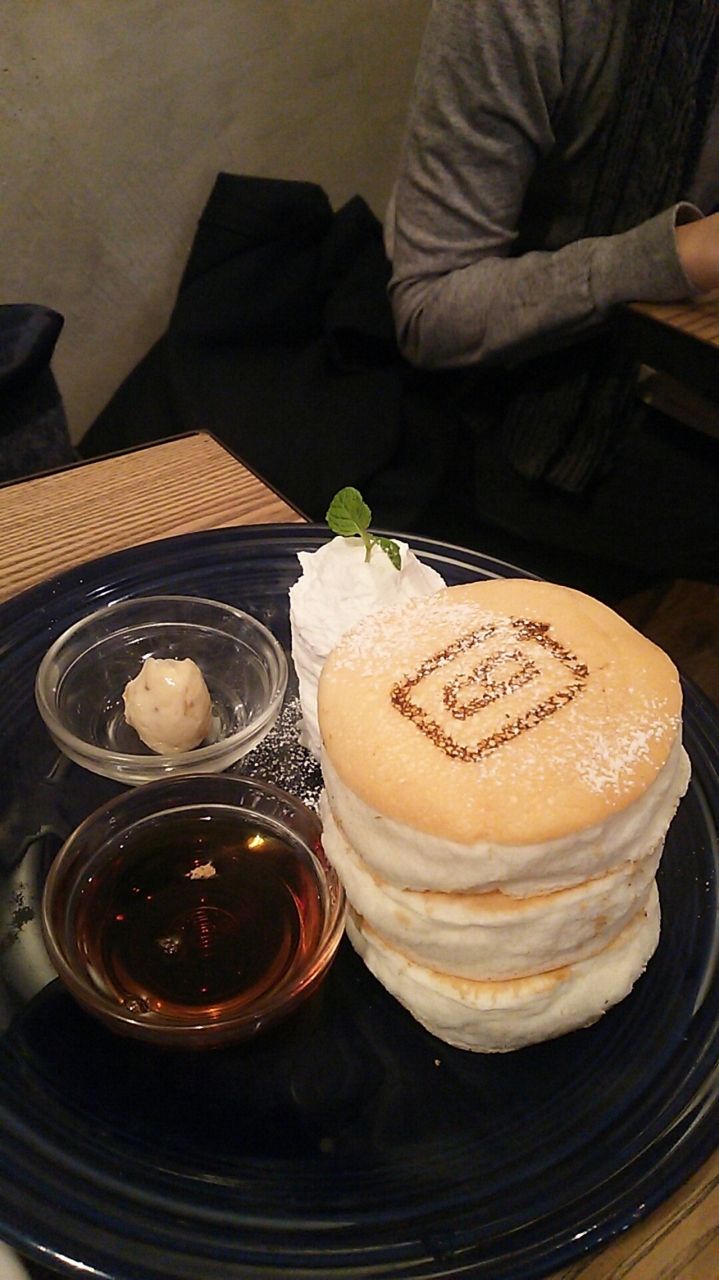 パンケーキはシンプルなものを選択。生クリームとメイプルシロップがたっぷり付いていました。