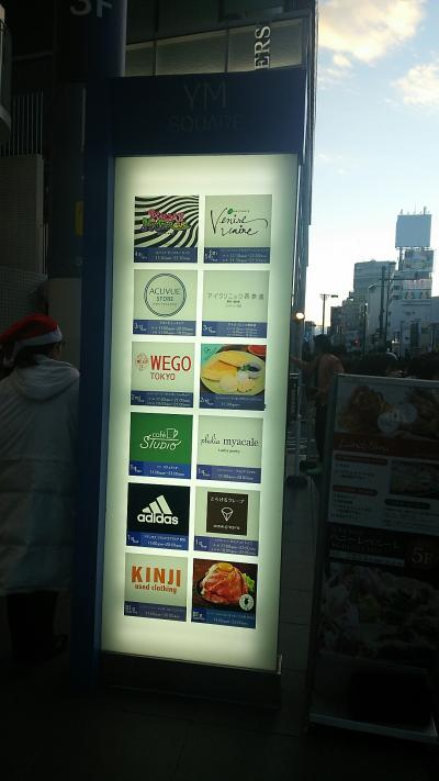 原宿の交差点、東急プラザ近くにあるYMスクエアです。飲食店、スポーツ用品店、カジュアルウェアのお店等が入店したショッピングモールです。