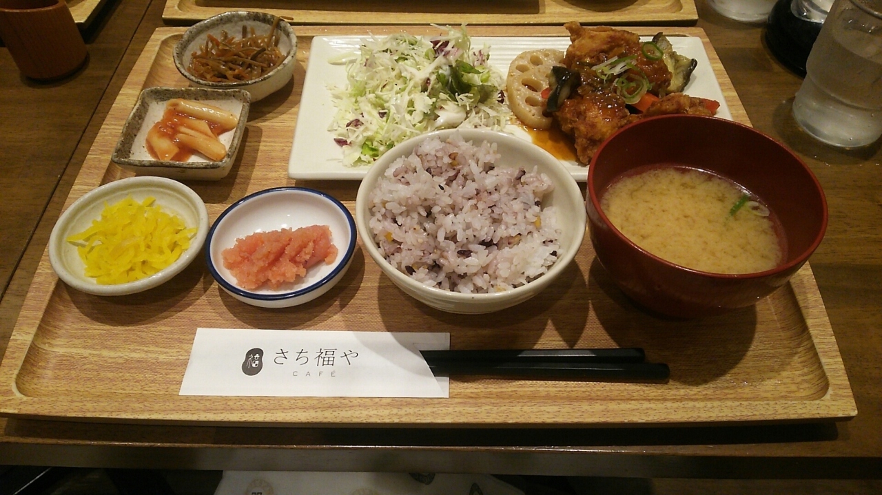 町田東急ツインズにある和定食のお店です。鶏の唐揚げが甘辛のタレと絡まっている定食をいただきました。
