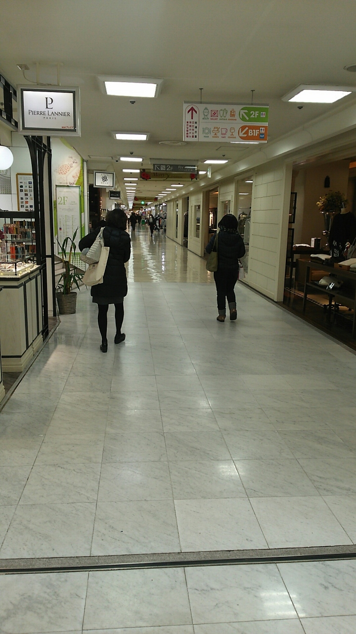 地下がレストラン、一階が古くからある洋品店や携帯ショップ等が入店しています。