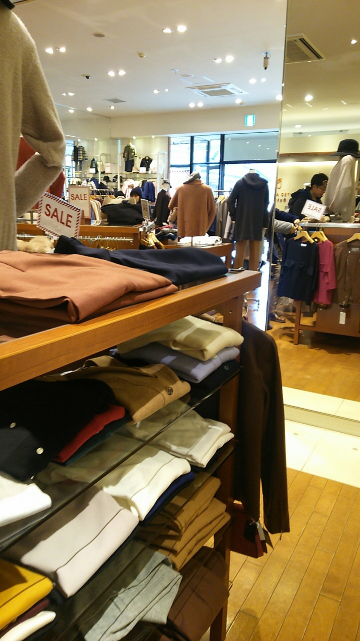 季節柄、ダウンコートやセーター等防寒グッズが充実していました。