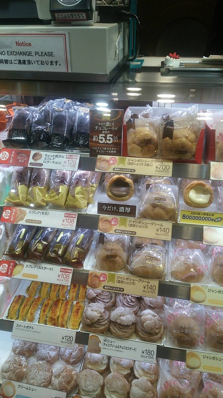 こちらの店舗は曜日によって、割引対象商品があるようで、火曜日は、エクレアの類いが10パーセント引きになるようでした。