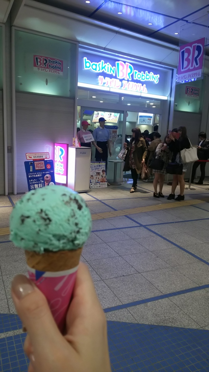 オアシス21の一階にあるサーティワンです。ソフトバンクのスーパーフライデーの日にお伺いしたので、行列を覚悟していましたが、意外にも回転が早くてびっくり。