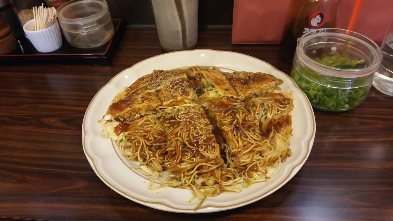 お好み焼きはかなりのヴォリュームなので、女性なら二人で1個で充分かと思います。
