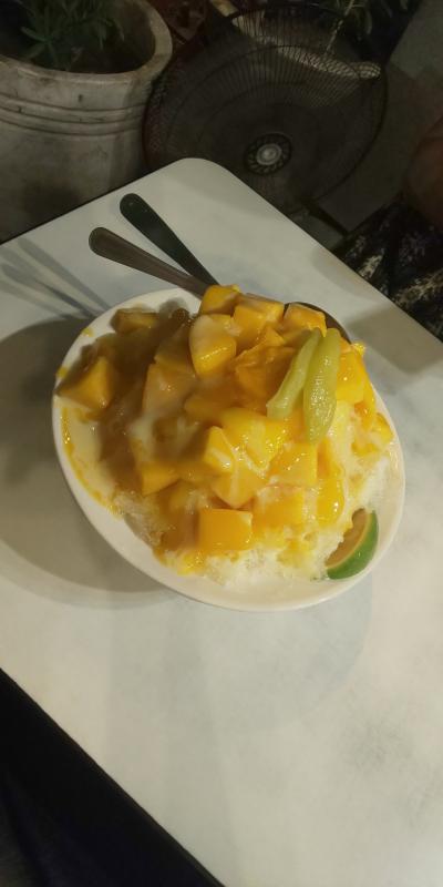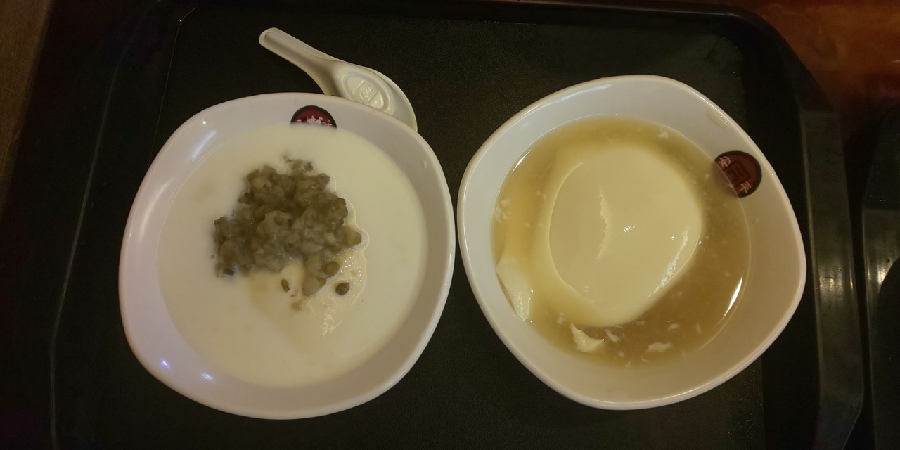 豆乳の入った、シルク豆花(緑豆付)と、豆花のレモンソースをいただきました。