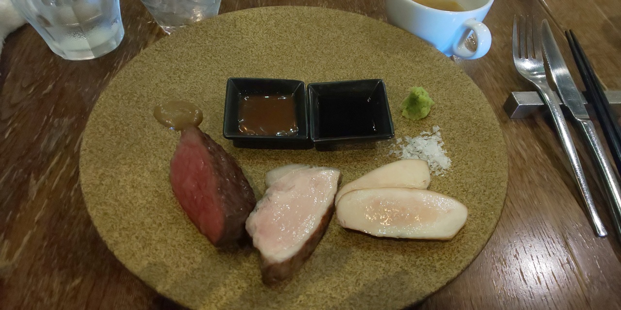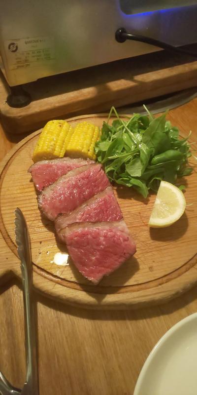 お肉は和牛、豚、鶏の3種。わさびをつけていただいた和牛がおいしかったです。- 旅行時期