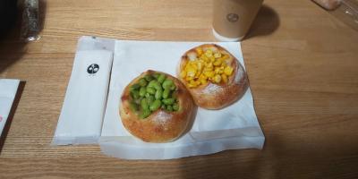 枝豆のパンとコーンのパン、ソフトクリームをいただきました。