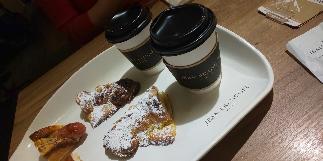 コーヒーの小さいサイズとクロワッサンアマンド、ソーセージのパンを購入しました。