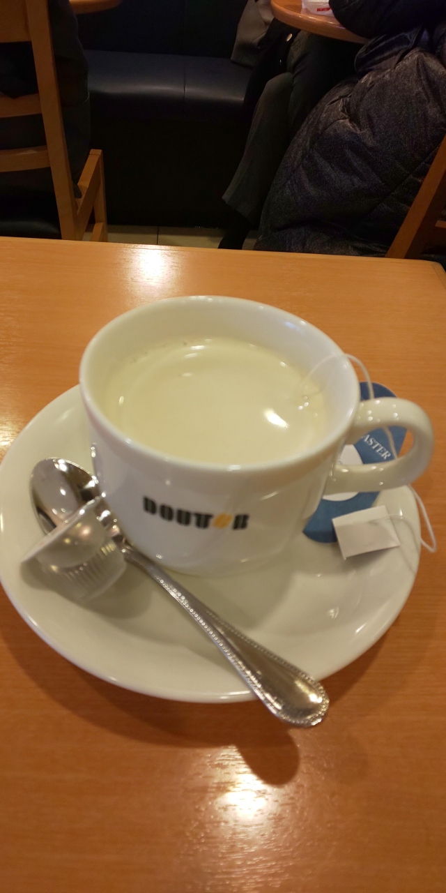 ロイヤルミルクティーをオーダー。ケーキやホットドックなどの軽食もあります。- 旅行時期
