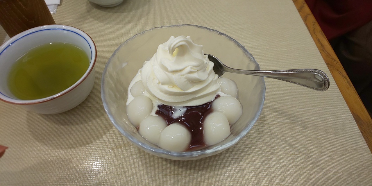 クリーム白玉ぜんざい(こしあん)をオーダー。