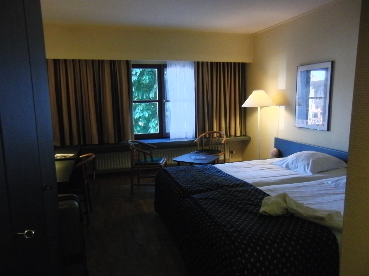 運河沿いの静かなホテルです。「旧市街に位置するSクラスホテル」とツアーパンフにありましたが、ゲントの門やアストリッド女王公園に近く、旧市街の鐘楼などには徒歩10~15分位の位置です。朝食はロビー奥に並び団体さんには椅子が少な目でした。