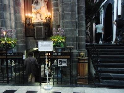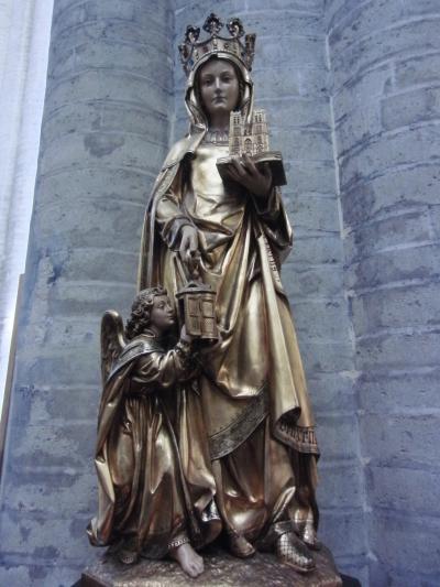 15世紀のゴシック・フランボワイアン様式ということです。アントワープから夢のお告げを受けた夫婦がマリア像をここまで運んだとのことで、そのマリア像と礼拝堂があります。ステンドグラスが素敵で、なかなか立派な聖堂です。周りにはチョコレート屋などが並んでいてオシャレな感じがしました。