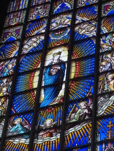 - ステンドグラスが素晴らしい。マリア像もステキ。