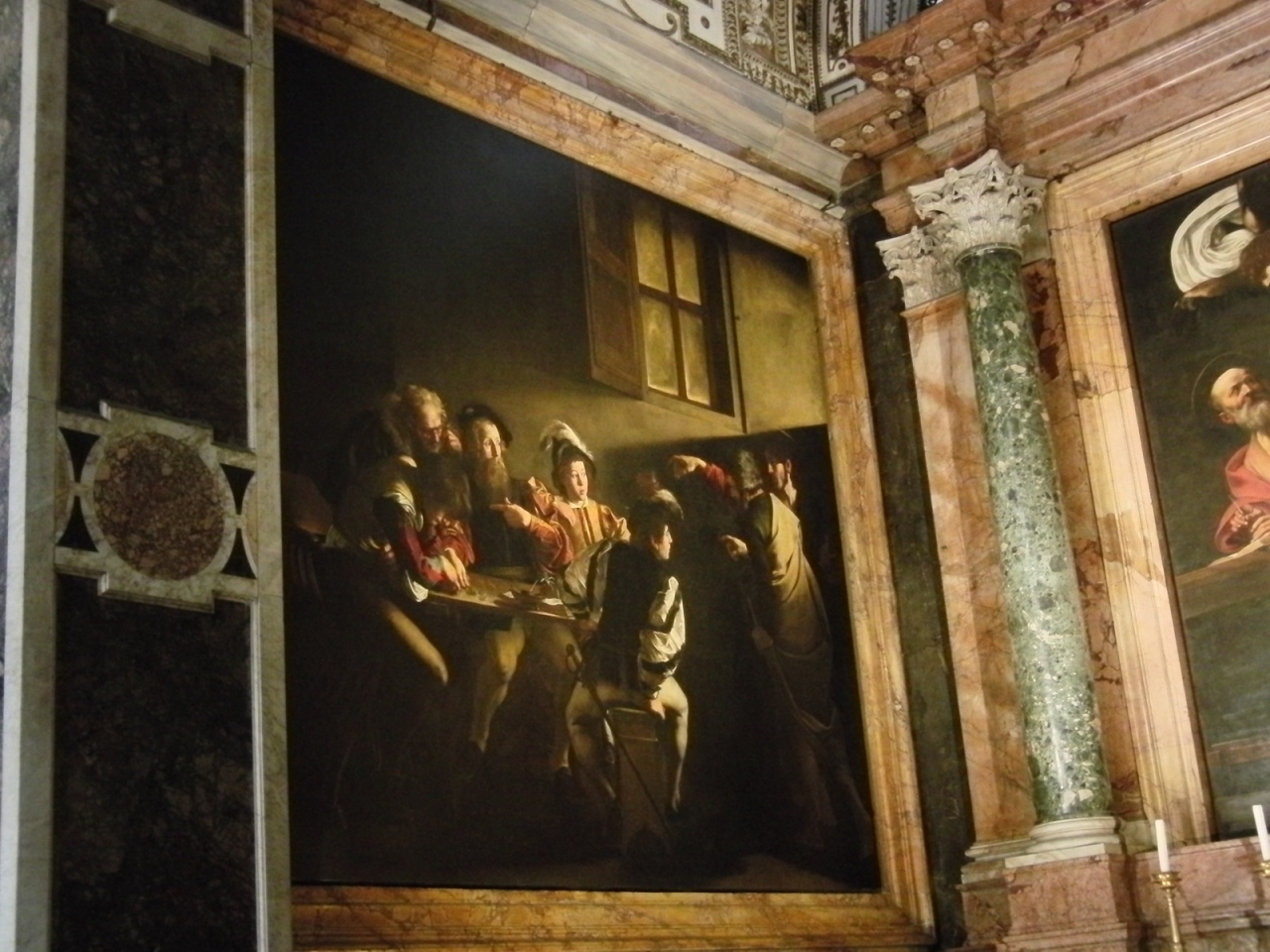 カラヴァッジョの《聖マタイ三部作》が正面左のコンタレッリ礼拝堂にあります。