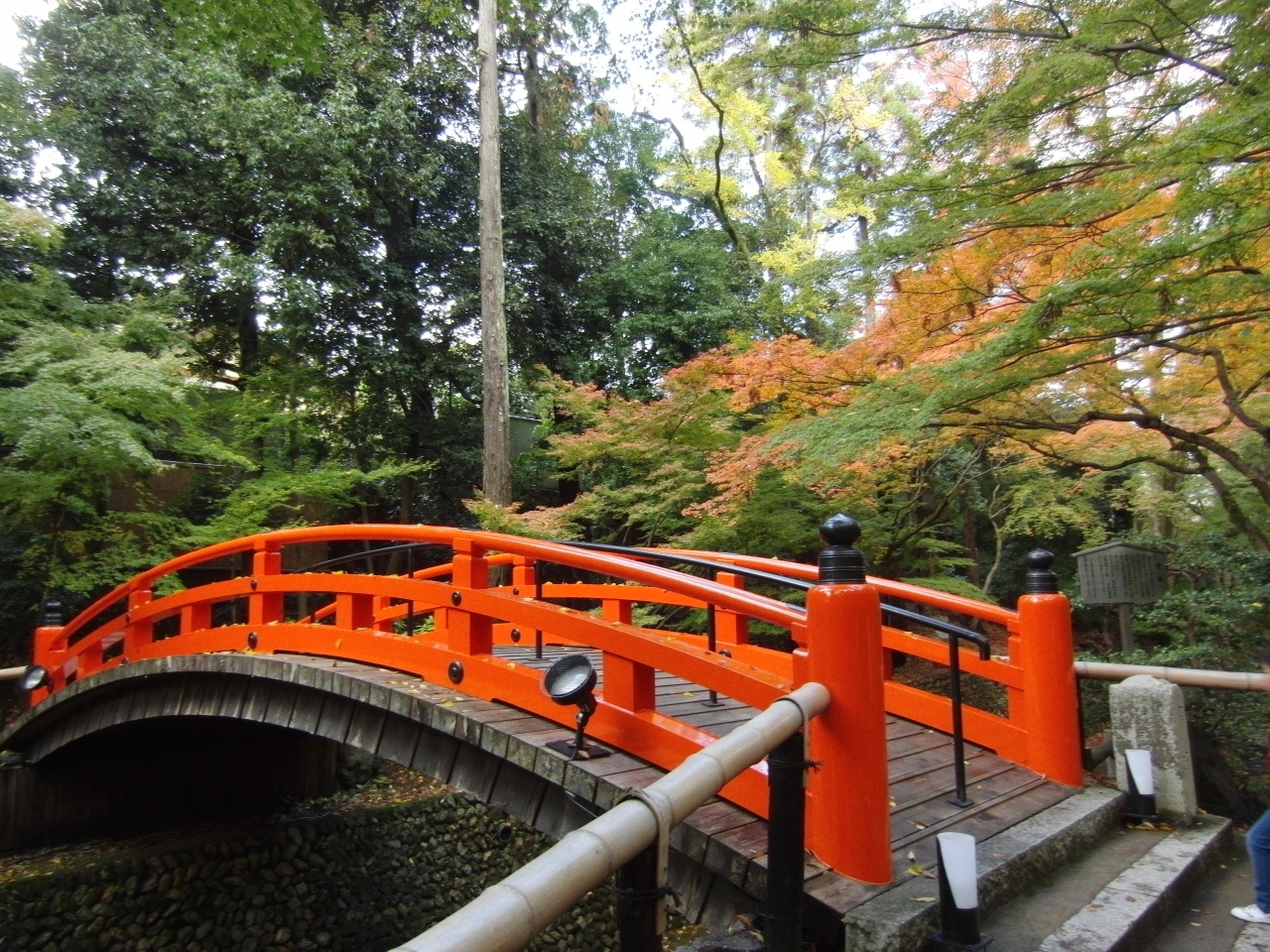 紅葉がたくさんあり、赤い橋や小川に映えてきれいです。