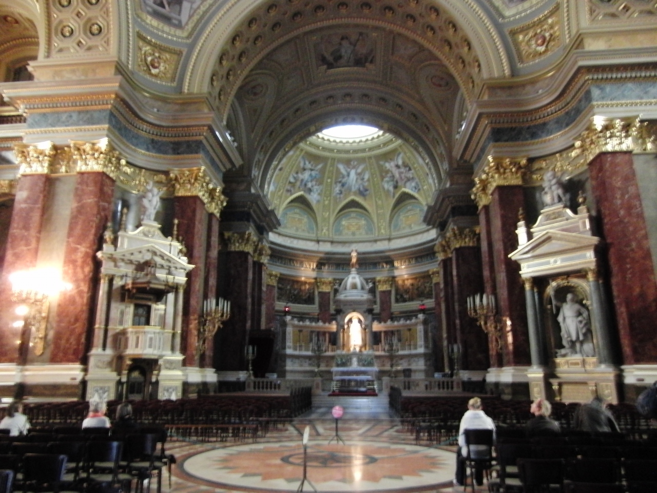 ブダペスト最大規模の大聖堂で、聖イシュトヴァンの右手のミイラが「聖なる右手礼拝堂」にあります。小銭を入れるとライトがついて右手が見やすくなります。従来の主祭壇に当たる部分に聖イシュトヴァン像が白くライトアップされています。堂内は広く、祭壇や像も大きいので見やすいです。
