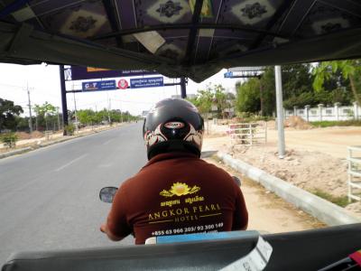 トクトクで空港から市内へ$5と安く、一般道路にもかかわらず信号はありません。
