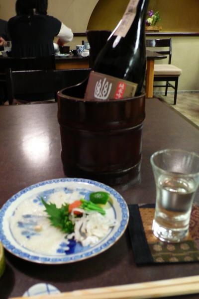 ふぐコースを頂きました。ひれ酒つきと言うことだったのですが、たいした量ではないと思いきや、湯のみ