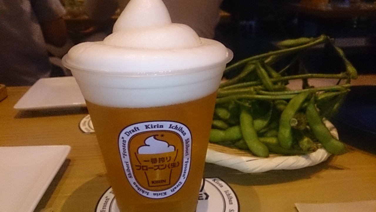 夏の暑い夜に飲むフローズン一番搾りは泡が凍っているからか、いつまでも冷たくおいしくいただきました(^_^)v