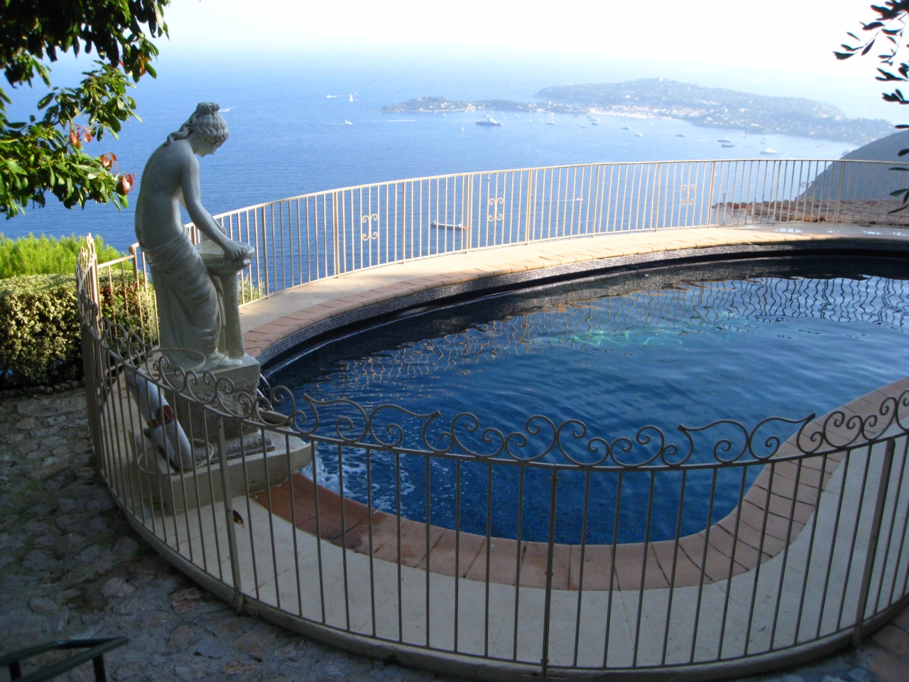 南仏、エズの村の中腹にあるホテルです。ホテルの部屋や広い庭園から眺める海は絶景!特に夏の天気のいい日だと、庭園にあるソファーに座って、何時間でも海を眺めていられるくらいです。夜はライトアップされるため、昼とは雰囲気が変わってムーディーに。宿泊料は高いですが、それに見合った価値のあるホテルだと思います。