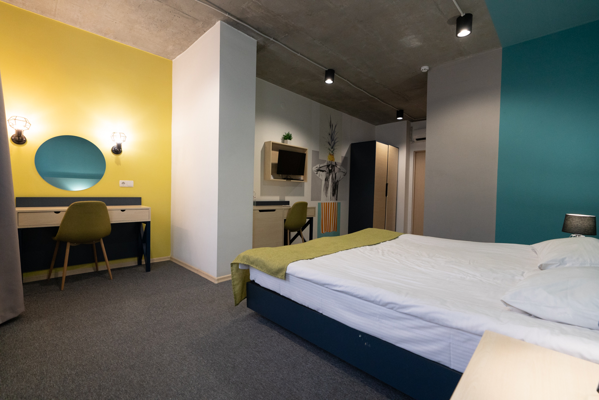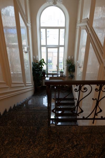 立地はキエフ駅から徒歩2,3分。空港行きのバス乗り場もすぐ近く。メトロのVokzalna駅へは地下道を通って徒歩5分ほど。徒歩5分以内にスーパーやPuzata Hataもありで便利。