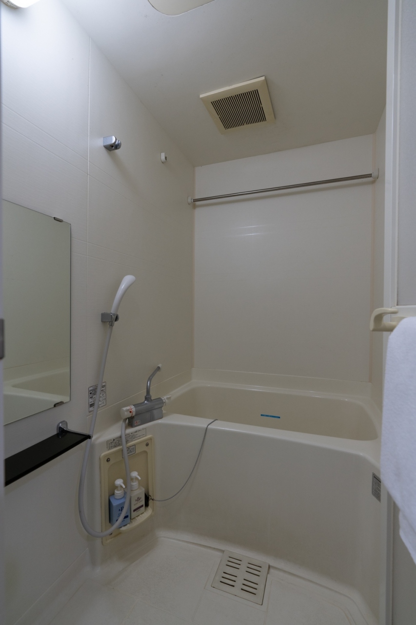 客室は中々広くてキレイ。バスルームはシャワーのみ。B1に大浴場あり。