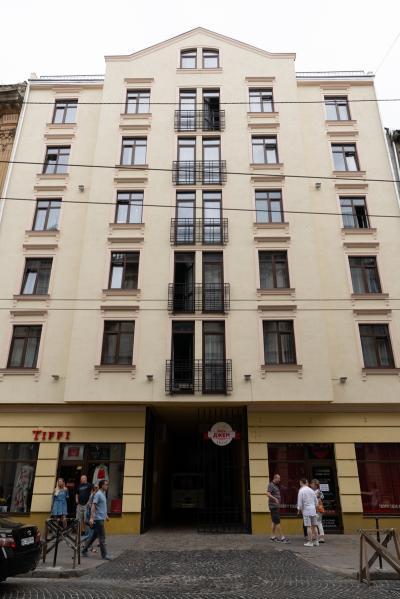 立地は空港からの9番のトロリーバスの終点?から徒歩5分ほど、旧市街の中心ルィノク広場へは徒歩7、8分。食事をするところやスーパーもそれなりにあり。