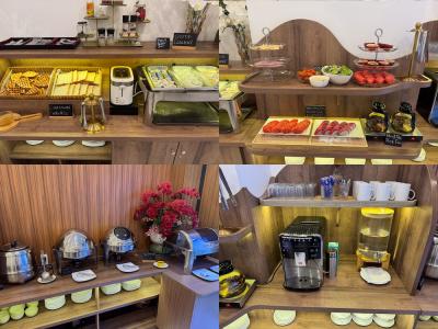 朝食はビュッフェ形式,それほど種類は多くないが,コーヒーメーカーもあったり味も悪くなく,好印象.