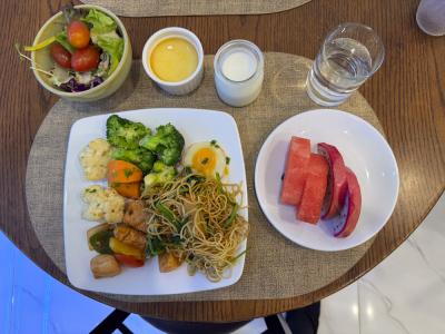 朝食はビュッフェ形式、生野菜、グリル野菜もあり種類・味ともに中々。