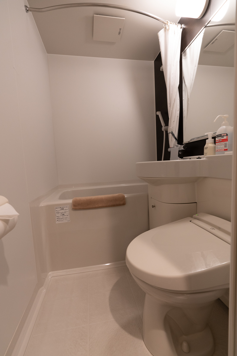 バスルームはユニットバス。アメニティはシャンプー、コンディショナー、ボディソープなど一通り揃っています。