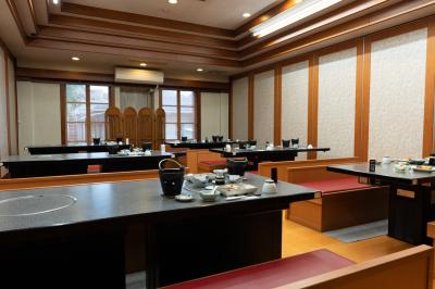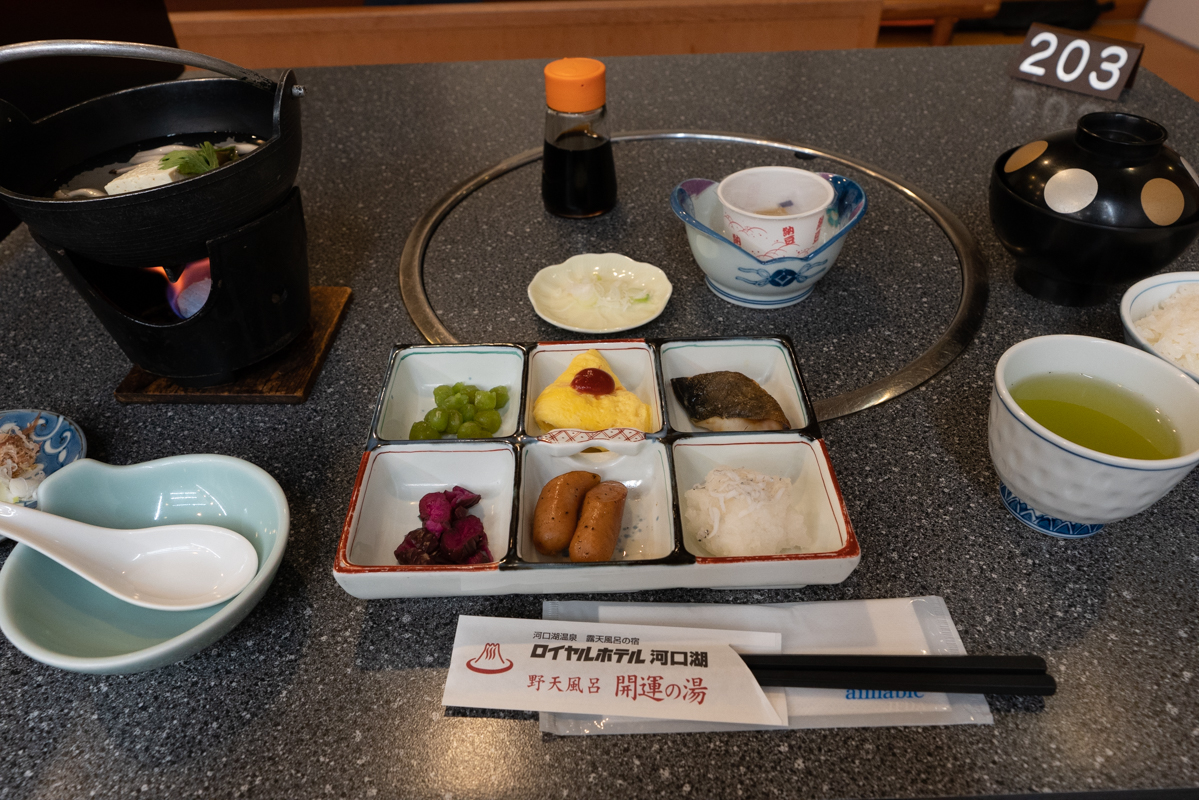 朝夕食ともに配膳される形式。安いプランだったので、夕食は正直イマイチ、朝食もそれなりでした。
