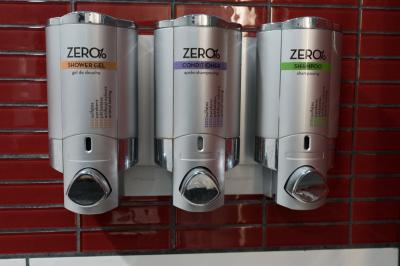 バスルームは可動式シャワー。アメニティはシャンプーとバスジェル。