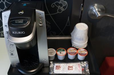 カプセルタイプのコーヒーマシンがあり、カプセルも3種類4つと充実していました。