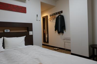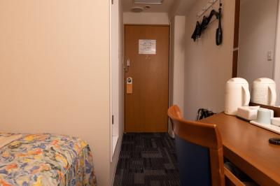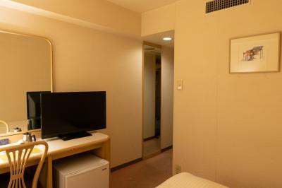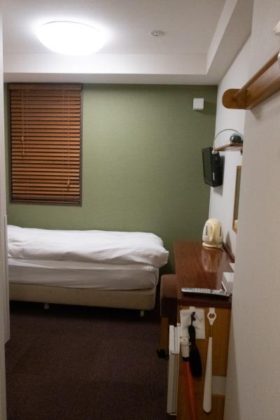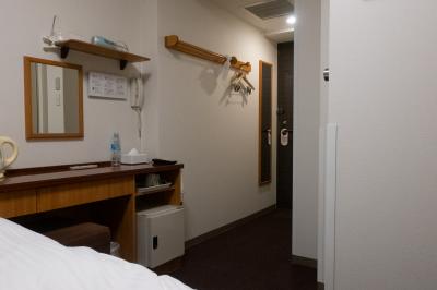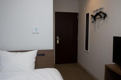 客室は十分に広い。部屋に冷蔵庫はありません。毎日500mlの水の支給あり。