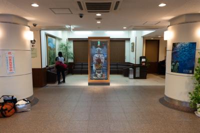 車での利用のため立地は不問としますが、龍泉洞から車で5分ほど、岩泉の町中にあります。ちょっとしたスーパーは歩いて5分くらいのところにあり。昭和の温泉ホテルといった趣です。