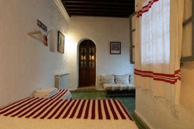 立地はメディナ北西のスーク門から歩いて5分弱。バスターミナルからは歩くと40分くらいはかかると思います。
