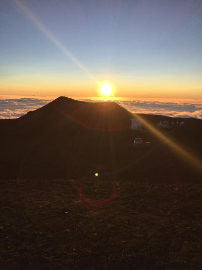 マウナケア山は入山規制がありツアー会社で入れる車は2台だそうです。なので、日にちによっては早く一杯になってしまうそうですよ。ちなみに私は2か月以上前に申し込みました。当日はとっても暑い日でした。防寒着なんて要らないよねって思って、山頂で車を降りたら…寒!!そう、富士山より高いんです。侮ってはいけません^^;