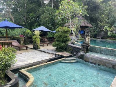 部屋はすべて独立したヴィラで、プライベートを大事にしたい方にぴったり。敷地内が植物でいっぱいなので、テラスが広い部屋を選ぶとゆっくりと過ごせます。系列のクブンインダーより中心部から離れていますが、プールはこちらの方が広くて寛げるのが良いです。徒歩圏内にもレストランが複数あるので困りませんし、ルームサービスのディナーも美味しかったのです。