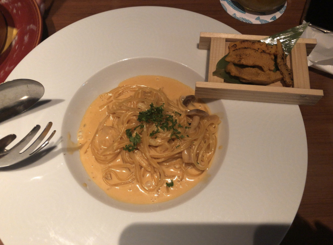 会社の友人と打ち上げで行きました。ウニのパスタが超絶品です。生ハムも量が多くてびっくりしました。お肉もデザートもパスタも美味しくてまた行きたいところです。店内もアクアリウムが素晴らしくて雰囲気が良いです。