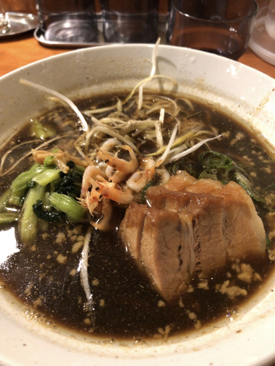 職場から歩いて直ぐのところにあり、急いでる事があり、1人で行きました。食券買ってカウンターに座るのですが、食券買うときにこれで良いのか?と悩んでると次の人に迷惑なのでさっさと購入、出てくるのも早いのでオススメです。真っ黒なスープを見た時はビックリでしたが、美味しいです。
