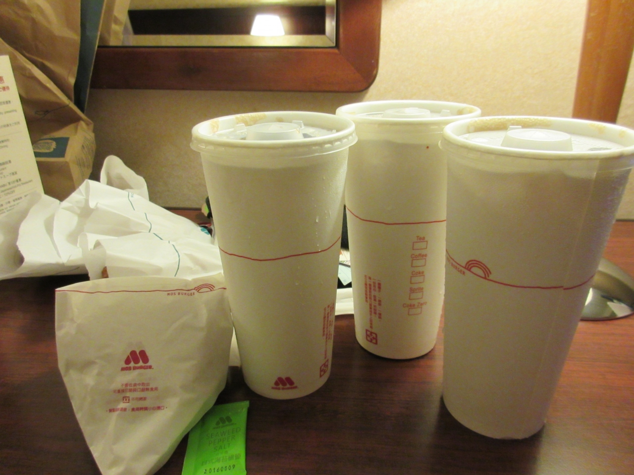 台北に着いた日、大雨で寒くてホテルで食べようと言う事になりテイクアウトできるモスバ−ガーに何故かたどり着きました。英語で注文しようとすると何故か日本語メニュ−が出てきて爆笑。スタッフさんもアルバイトの学生さん?と言う様な方で和やかに注文しました。味は中華風のソ−スでこれはこれで美味しかったです。