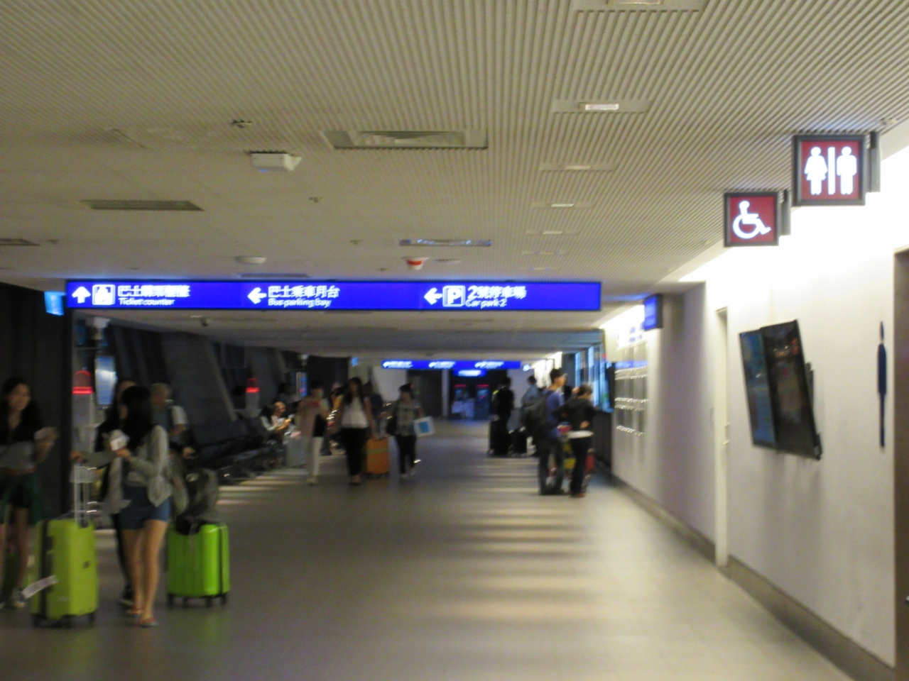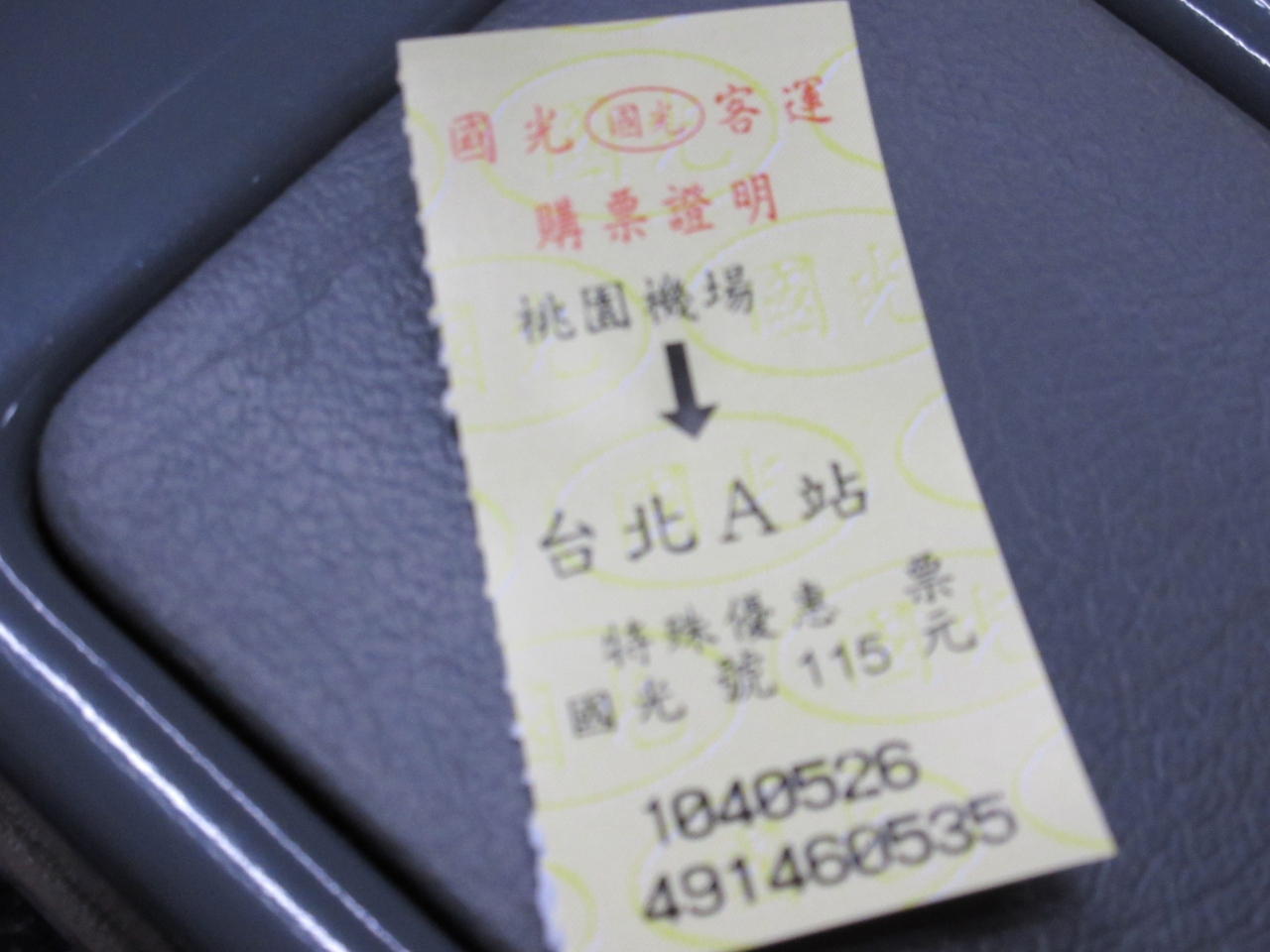 空港から台北駅まで利用しました。以前、台湾観光局から空港と市内までの片道バス無料チケットのプレゼントの恩恵にあずかり、片道は無料でした。第一タ−ミナルのバス乗リ場は地下に向かっていくとあります。私達は国光ト言うバス会社を利用しました。バスのチケット売り場も綺麗で売り場のおばさんに3本指を立てスリ−ピ−プルト言うとさっさとチケットと交換でバスのチケットをくれました。バス乗り場に行くと男性スタッフさんが待っていてバスが来るまでここで待ってろ的なジェスチャ−をされました。バスが来て荷物を下の荷物入れに入れたら出発です。大体50分くらいで到着します。遠い旅です。