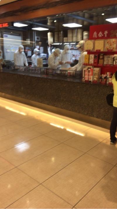 地下の鼎泰豊でテイクアウトとお土産を購入。食事もしました。地下に降りるとすぐに解る所にお店があり、パイナップルケ−キを5箱購入。日本だと2800円するこのパイナップルケ−キも食事、テイクアウト、パイナップルケ−キ5箱で15000円位でした。私達は日本の価格と比べて居るので安いと思いましたが、お店側はそうでもないらしく、スタッフさん結構な人数でお見送りしてくれました。又、行きたいお店の一つです。