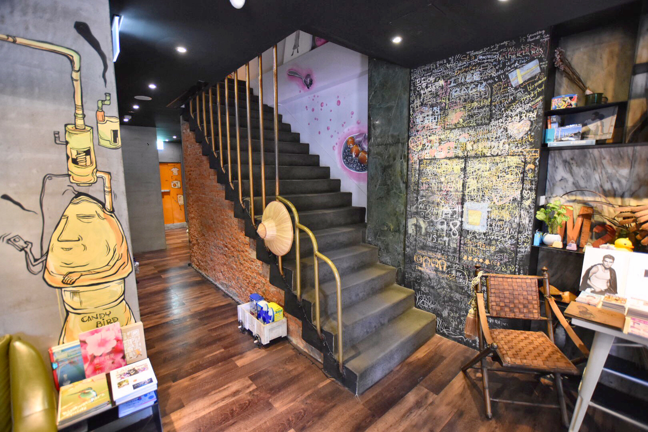 ロビーの遊び心あるデザインで迎え入れてくれます。部屋は4人部屋で、それぞれのベッドに充電スペースもあり、勿論カギ付きのロッカーも人数分あり。