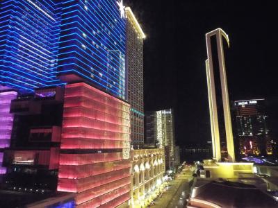 夜はネオンが光り輝く高層ビル群に位置し、近くにはカジノやレストラン、ショッピングモールがいくつもあります。ホテル内にも本格的なカジノがあります。