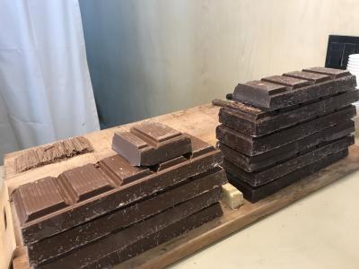 チョコレートをカットしてもらいます。大きなブロックだからら大変そうでし...