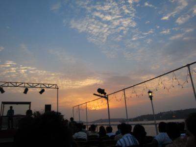 アラビア海に沈み始めた太陽。船の上から。この船の上ではみんなノリノリで...