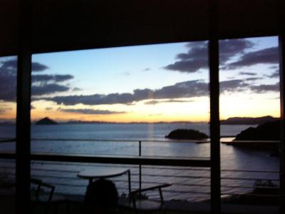 二日目はミュージアム。その名の通り美術館の上階がホテルというユニークな作り。特筆すべきは、部屋全部が西側に向いていて瀬戸内海に沈む夕日が堪能できることです。素晴らしいの一言。