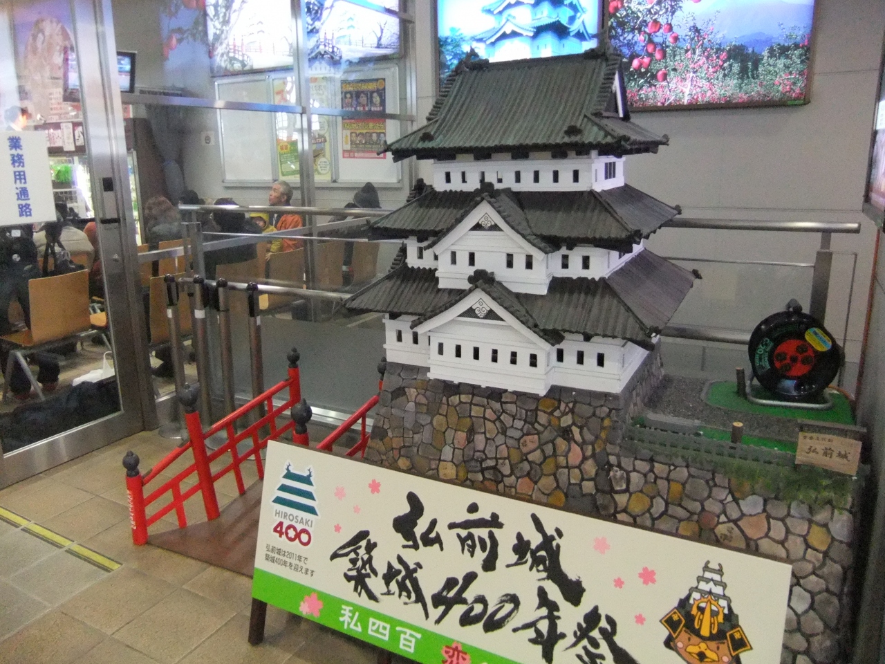 JR弘前駅改札内にミニチュアの弘前城が設置されていました。